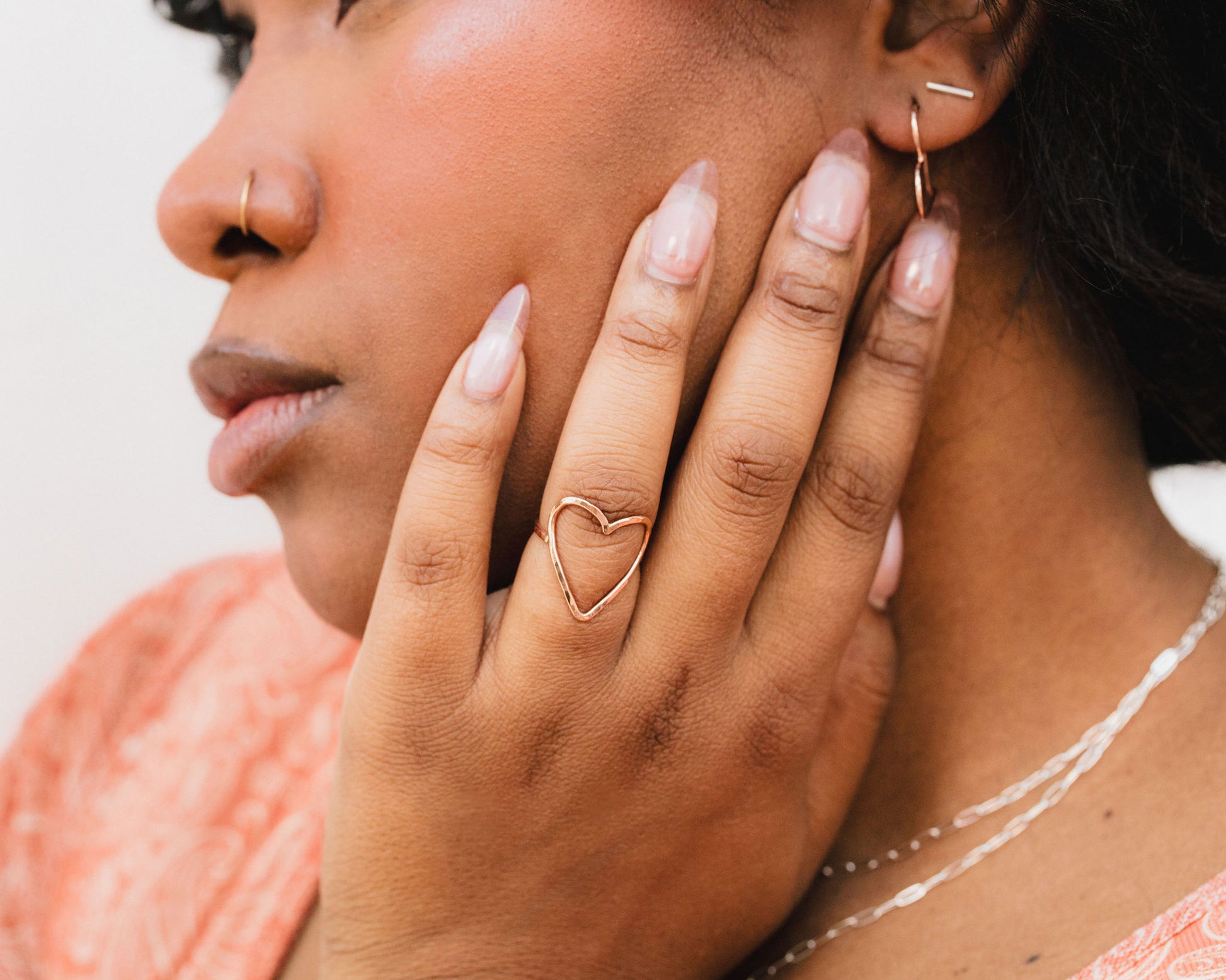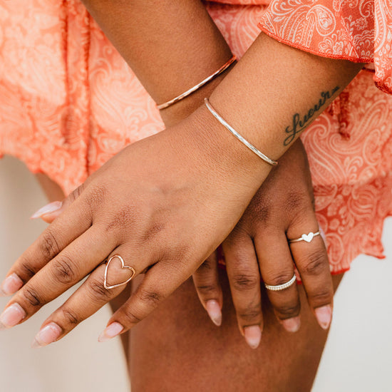 This ring is offered in 14 karat yellow gold filled, 14 karat rose gold filled, or .925 sterling silver, allowing you to choose the metal that best reflects your style. Strong, open, and intentional, the Bold Heart Ring is a timeless reminder to lead with heart.