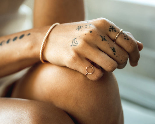 With bangles the tricky part is not the wrist but the largest part of the hand the bangle needs to pass over. To figure out your size, grab a flexible tape measure and squish your hand down (as if you're preparing to pass a bangle over it). Wrap the tape measure tightly around the biggest part of your hand. Then compare that measurement to the circumference above and select the size that works best for you. If it is a gift, the most common size is medium. If you're unsure it's always best to go bigger than smaller. If you are purchasing a personalized piece, because they are so highly specialized, they are final sale.