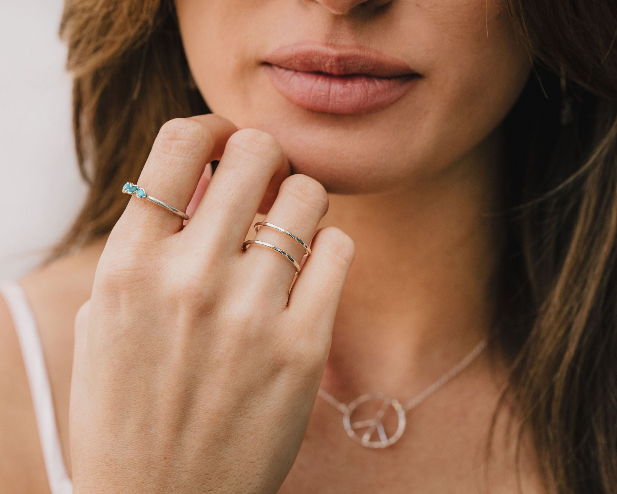 PLEASE NOTE: If you plan to stack FOUR or more rings on one finger, consider ordering 1/2 size bigger than your standard ring size for a more comfortable fit.