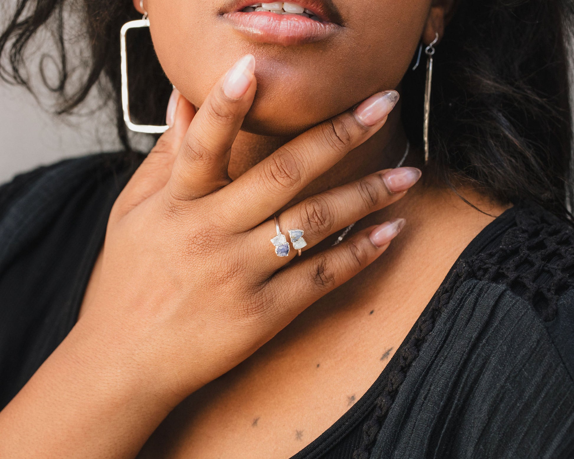Discover the artistry of our electroformed raw birthstone rings, each featuring genuine, organically shaped gemstone in your choice of: