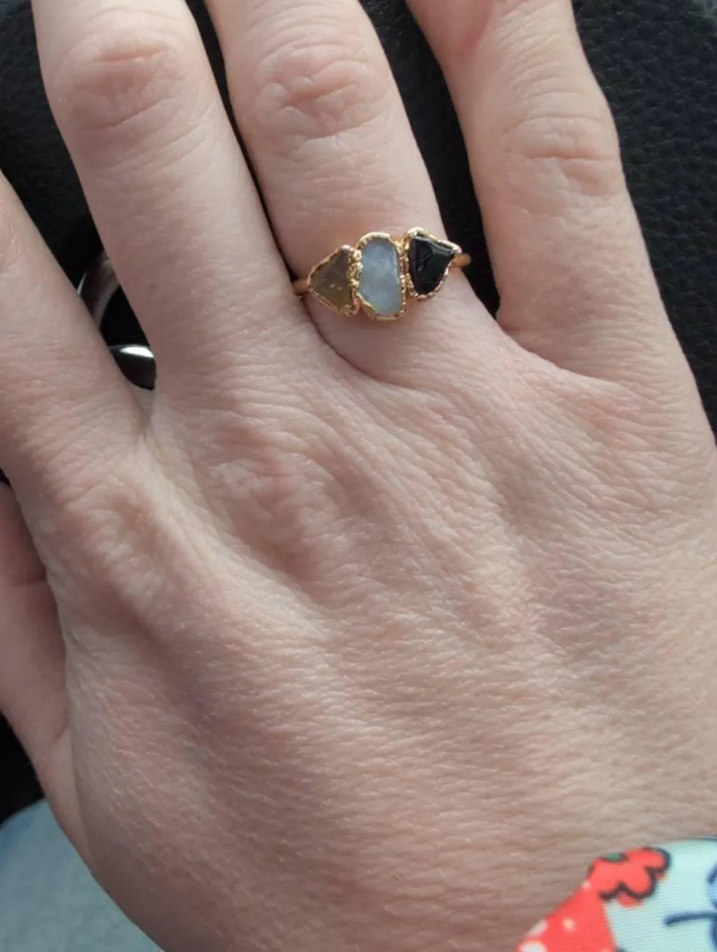 Occasionally, certain stones such as turquoise or pink tourmaline may react during the electroforming process despite sealing. If this occurs, we will remake your ring with new stones at no additional cost. During higher volume periods, slight delays may occur, and we will communicate if timing is affected.