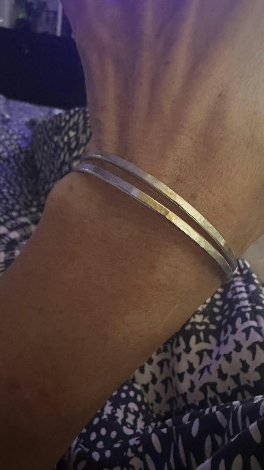I wear a lot of mixed metals. These beautiful hammered cuffs are great to mix.