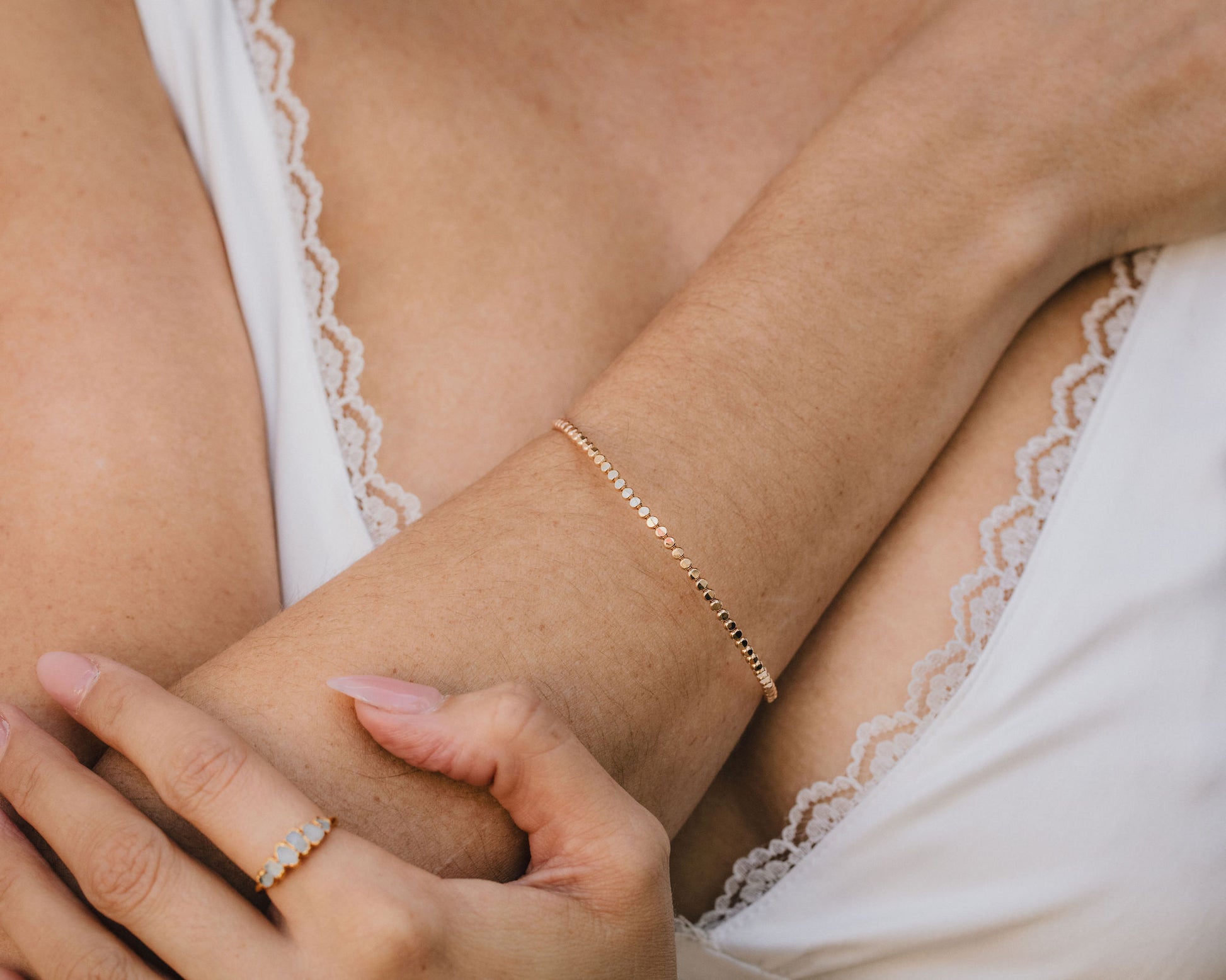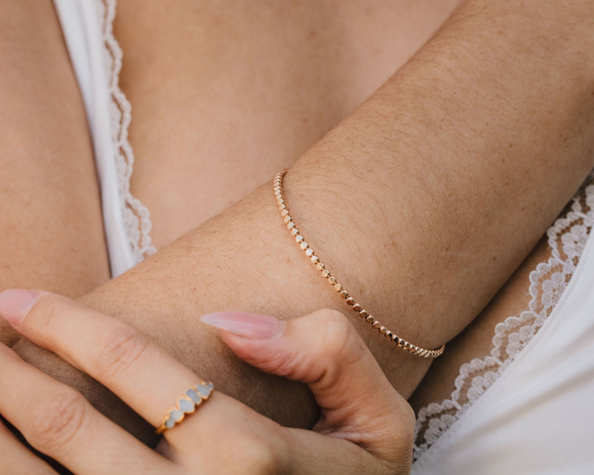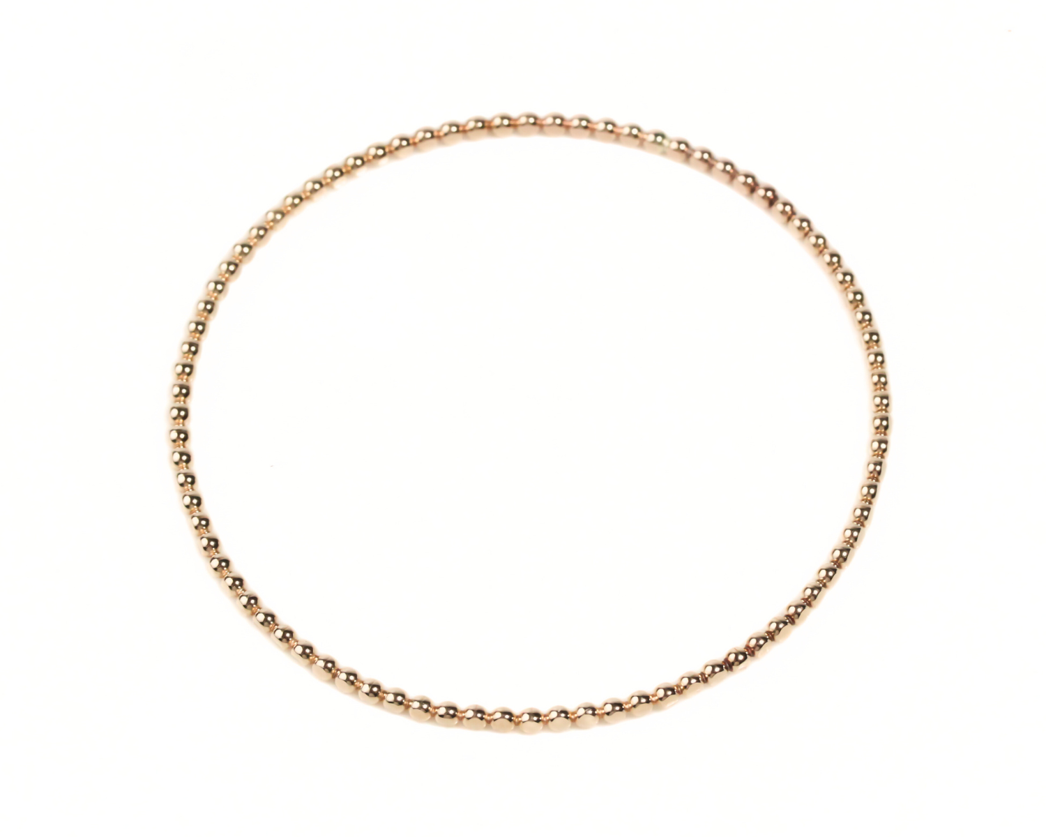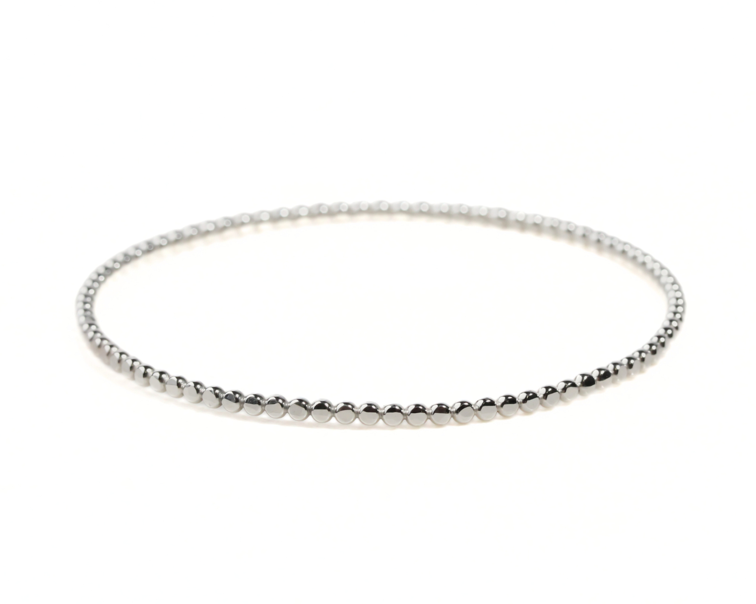 Handcrafted from 2.3mm beaded wire in sterling silver or 14K yellow gold filled, this bangle features a hammered bead texture that adds shimmer and depth with every movement. Its smooth, rounded design feels beautiful on the wrist and is perfect for stacking or wearing solo as a quiet statement.