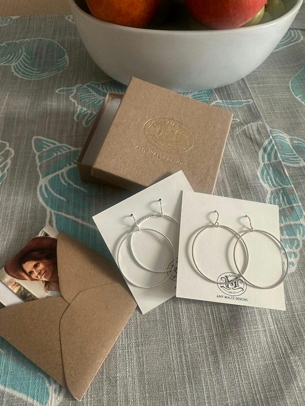 The simplest elements make up this minimalist earring design. Chic circles spin below our fine metal ear wires. The circles are entirely handcrafted using fine metal twisted wire. This lovely material glints and gleams from all angles. Its smooth beauty is ideal for hoop earrings.