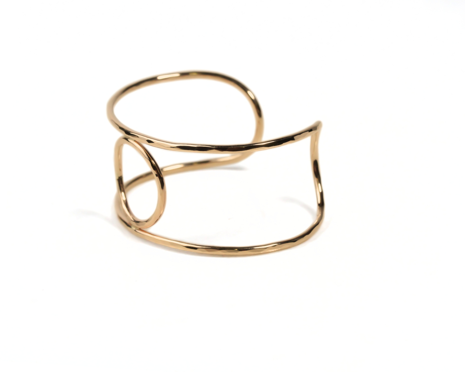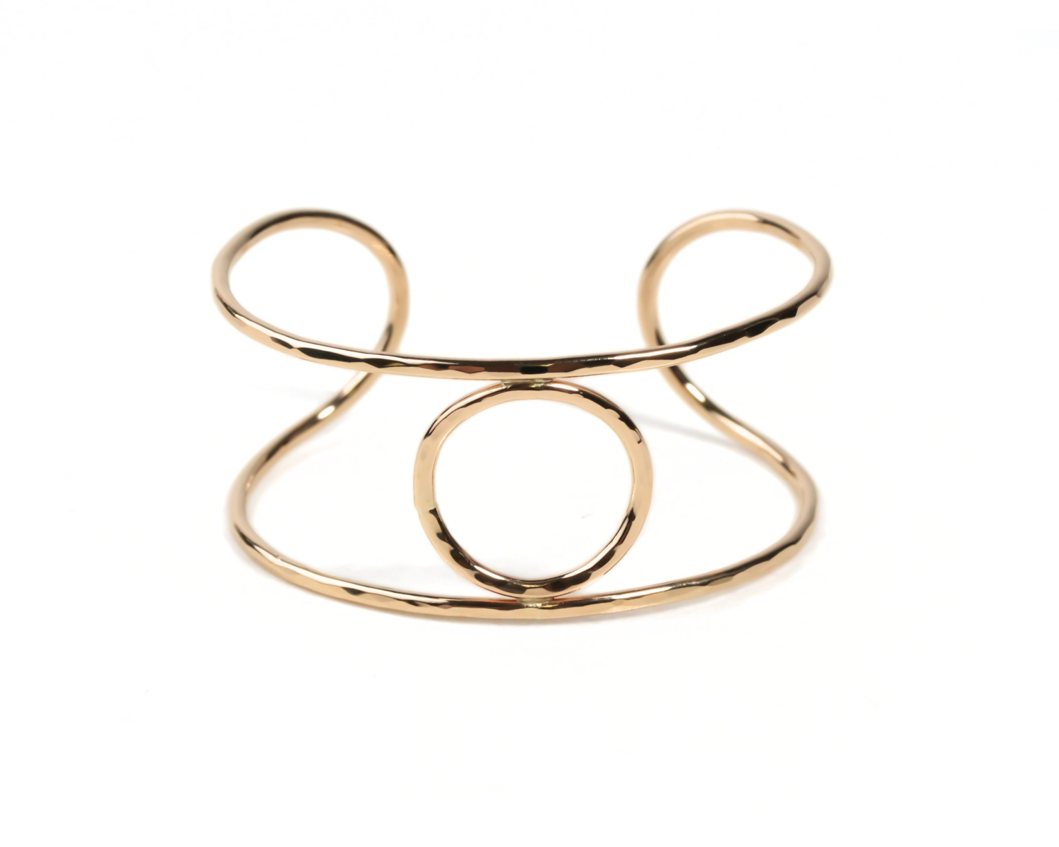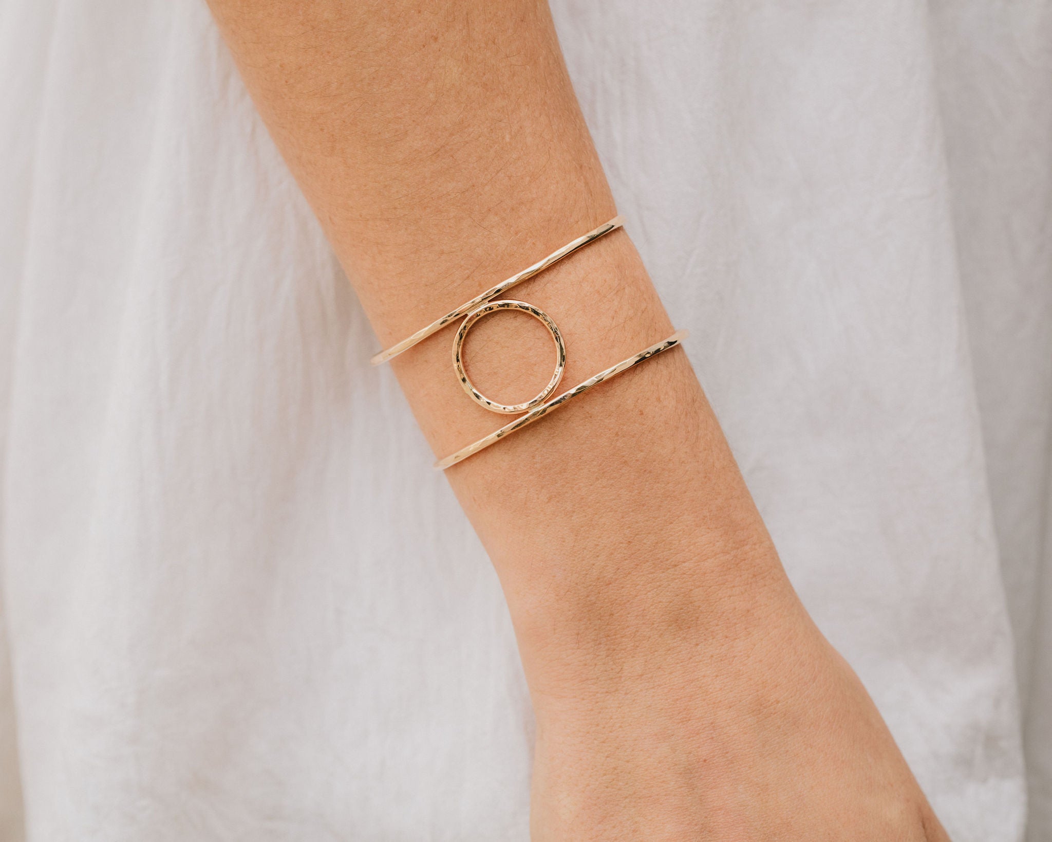 This open circle cuff is handcrafted from 12G round wire in your choice of sterling silver or 14K yellow gold filled and finished with our traditional faceted texture for a soft, light-catching shimmer. Slightly under 1" wide, the Vessel Cuff embodies wholeness, protection, and flow and serves as a reminder to stay present and receptive to life’s rhythm.